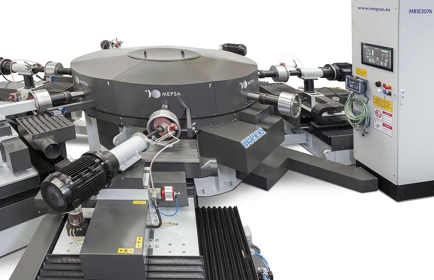 Mesa rotativa indexada con 7 estaciones de trabajo.