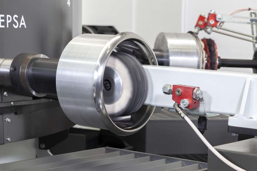 Configuración de la máquina adaptada a las necesidades del cliente. Vista general de la mesa rotativa y de las unidades de pulir.