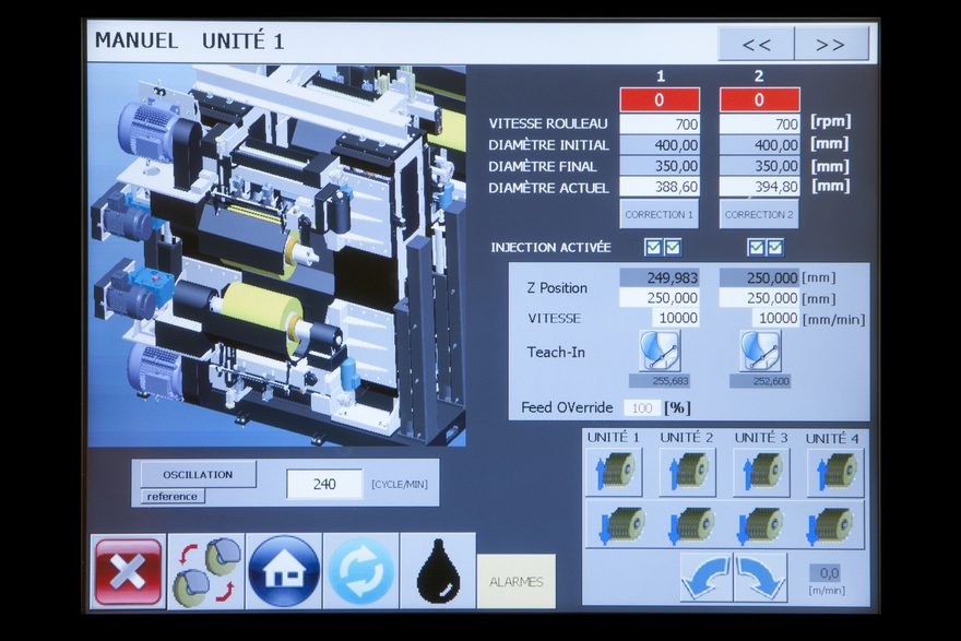 Línea automática especial para pulir a doble cara bobinas de chapa de acero inoxidable.Capacidad de trabajo: ancho desde 600 mm. hasta 1.500 mm.