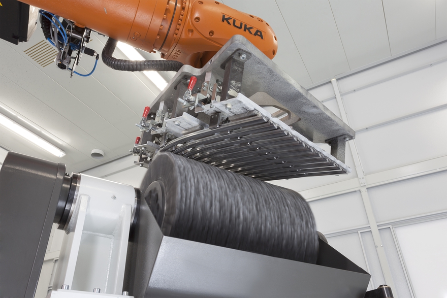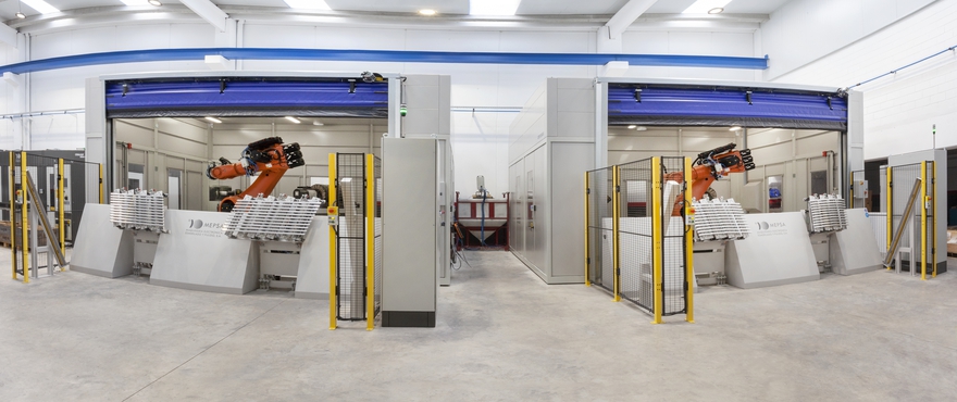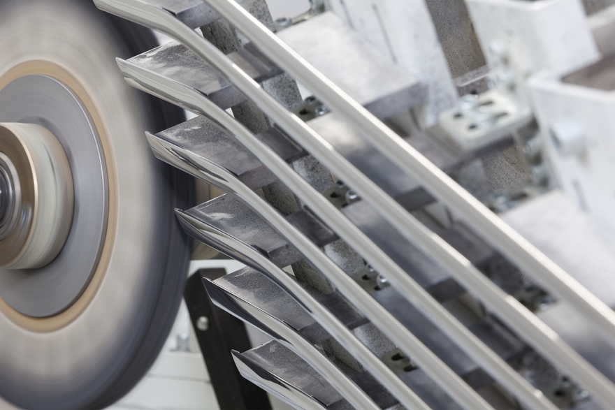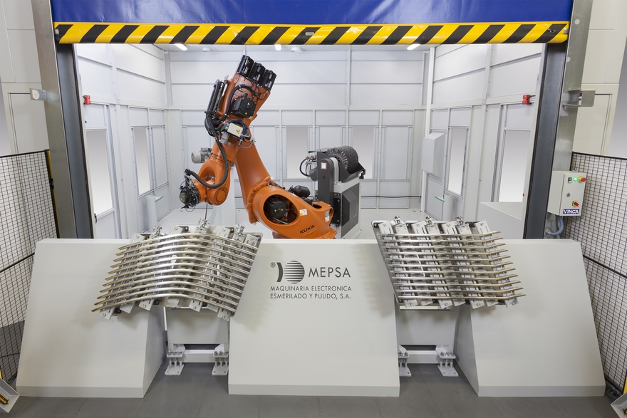 Célula robotizada para pulir perfiles de ventana para automóviles.