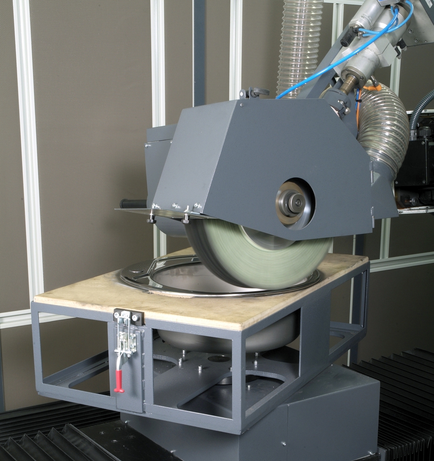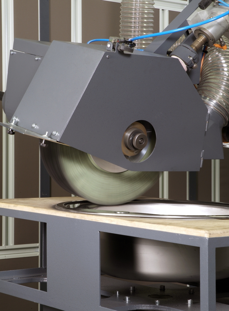 Máquina especial CNC para el satinado o pulido del contorno superior de fregaderos.Tipos de piezas: fregaderos de acero inoxidable redondos y rectangulares, con uno o dos senos.