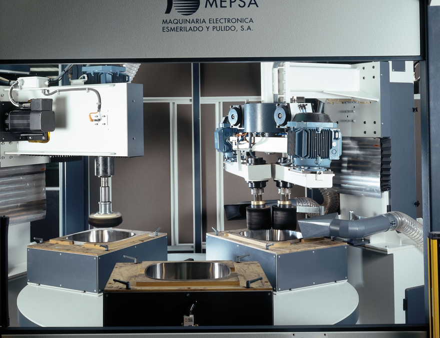 Vista general de la mesa porta-piezas y de las dos unidades de pulir. Unidad para fondos y unidad doble para laterales.