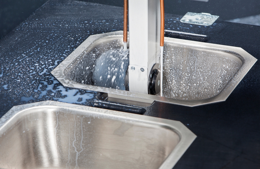 Máquina rotativa CNC especial para el pulido de fregaderos.Tipos de piezas: fregaderos de una y dos cubetas, recipientes, etc.