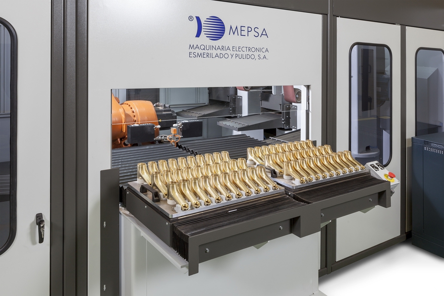 Célula robotizada para lijar cuerpos de grifería sanitaria.Tipos de piezas: Griferia Sanitaria de fundición, mecanizado o forja.