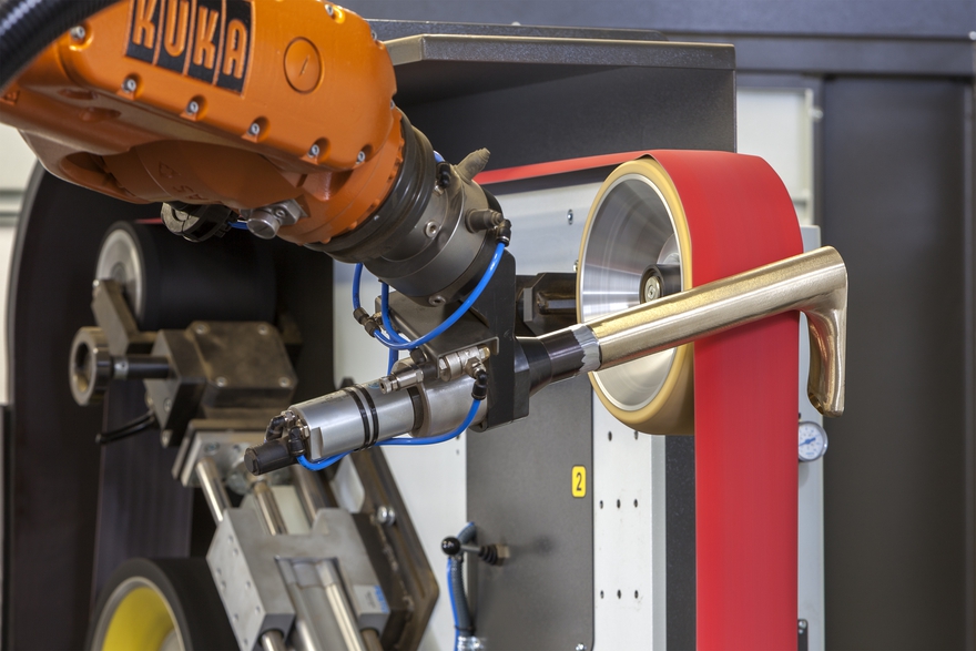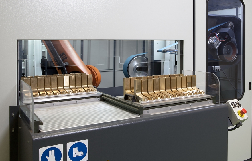 Célula robotizada para lijar cuerpos de grifería sanitaria.Tipos de piezas: Griferia Sanitaria de fundición, mecanizado o forja.