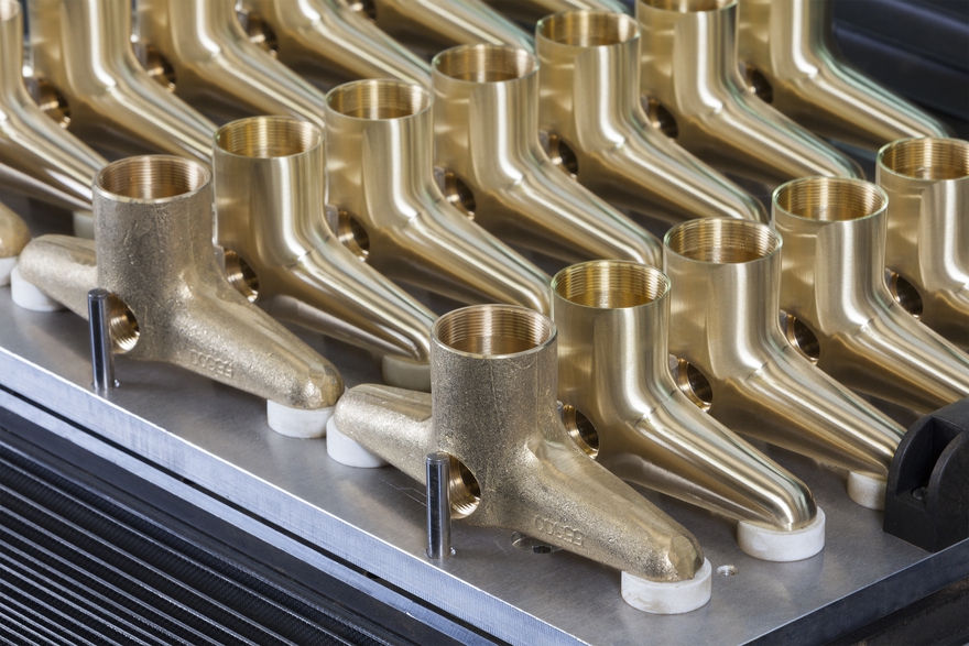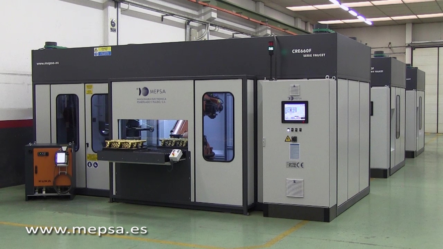 Célula robotizada para lijar cuerpos de grifería sanitaria.Tipos de piezas: grifería sanitaria de fundición, mecanizado o forja.