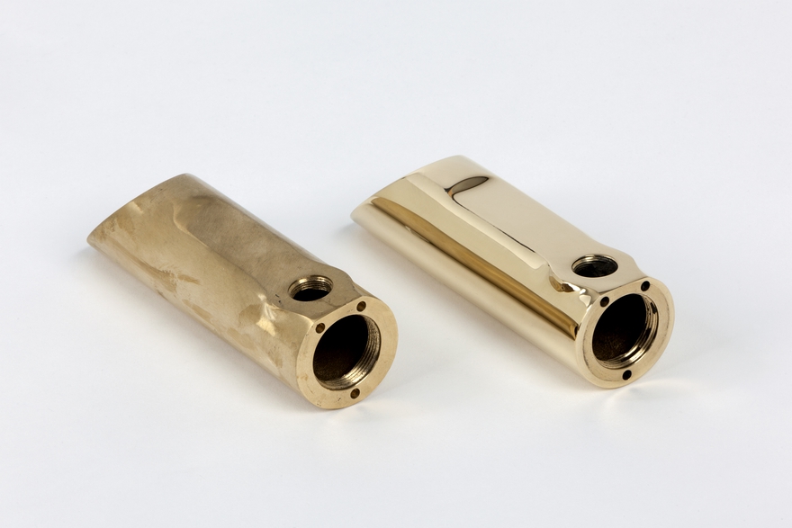 Detalle de piezas con geometrías diversas donde se consigue un pulido del 100% de la superficie.