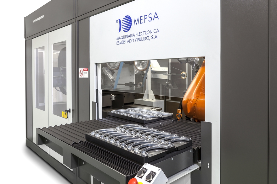 Célula especial para lijar, pulir y satinar piezas de herraje y accesorios.Tipos de piezas: manivelas, asas, tiradores, bases, bisagras, etc.