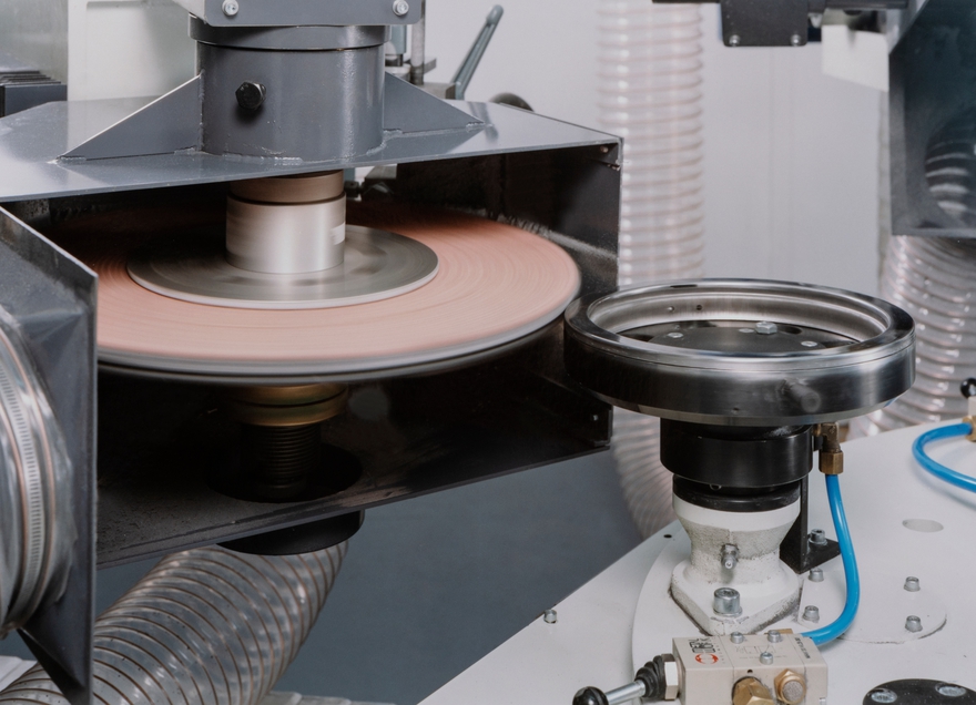 Máquina rotativa para pulir piezas de revolución.Tipos de piezas: ojos de buey iluminación, aros downlight circulares y cuadrados, florones, pomos, rosetas, accesorios de baño y piezas de revolución en general.