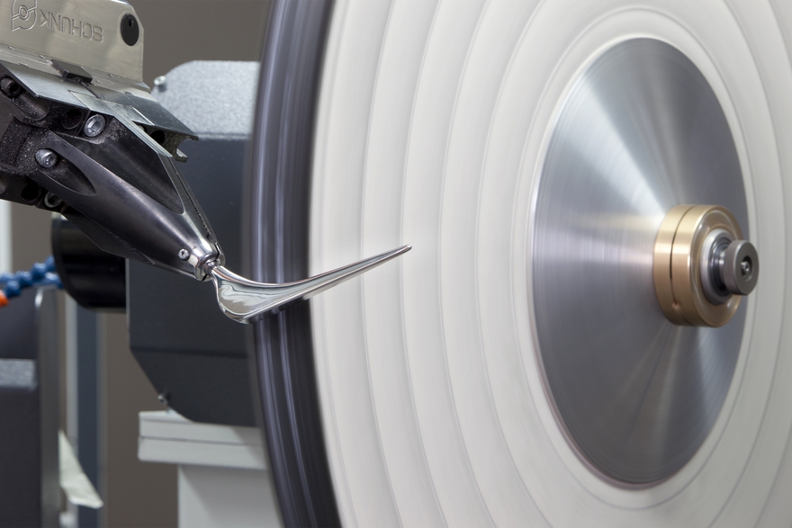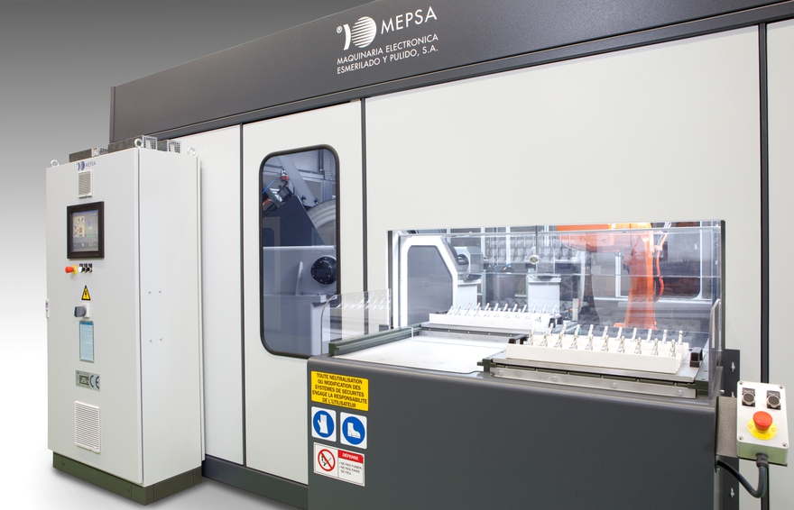 Sistema automático que combina el control de la presión de trabajo programada, la compensación del desgaste y el mantenimiento de la velocidad tangencial de los discos de pulir.