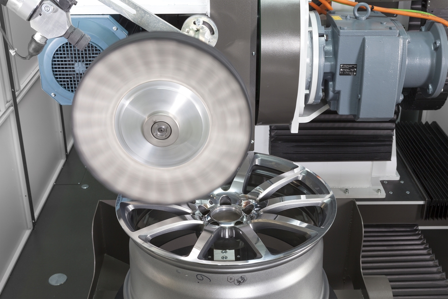Máquina especial CNC para el pulido de llantas de automóvil.Tipos de piezas: llantas de automóvil de forja o fundición.