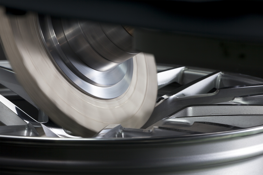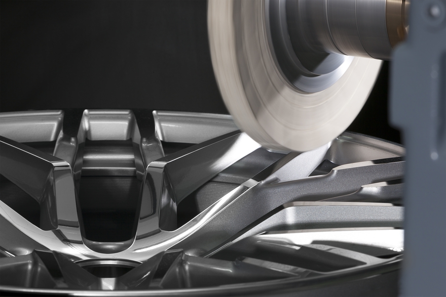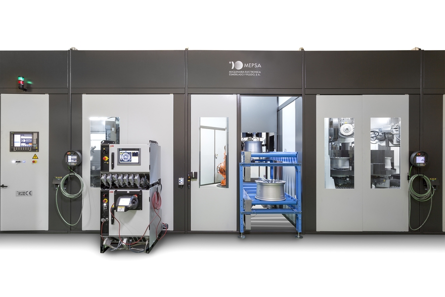 Maquina con transfer rotativo indexado para pulir llantas de automóvil.Tipos de piezas: Llantas de automovil de forja o fundición.