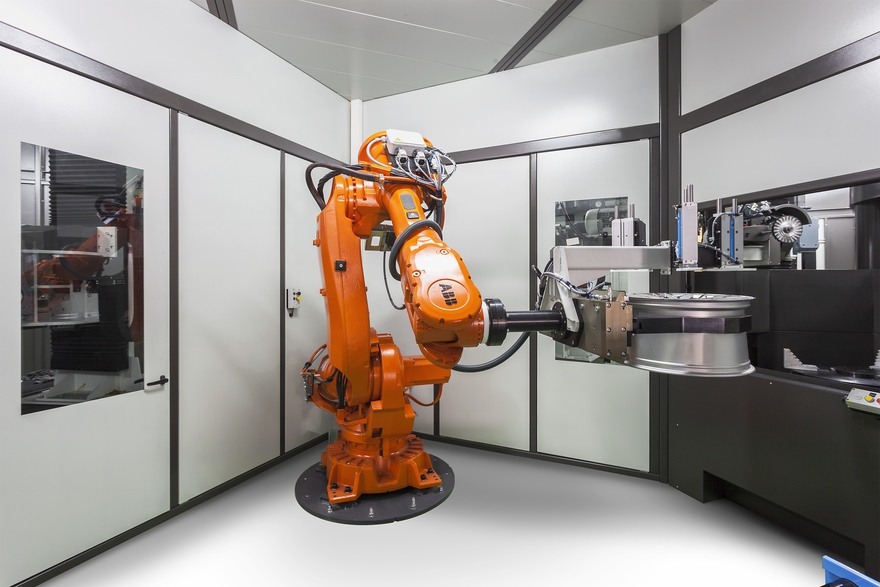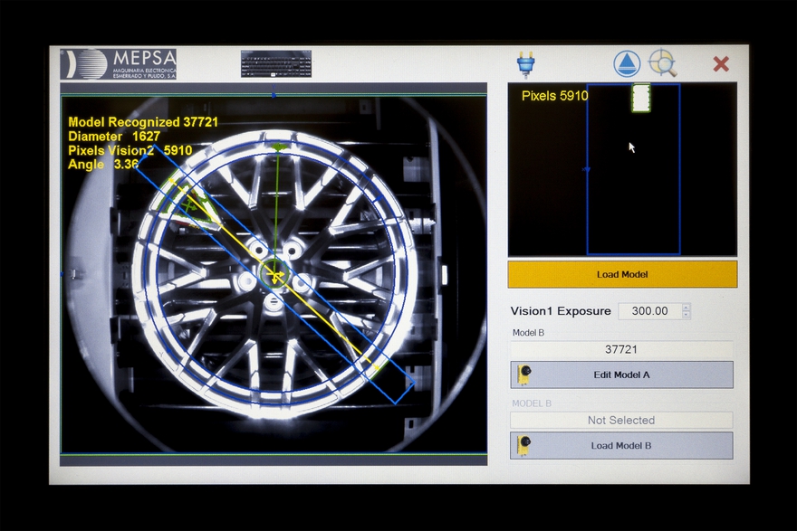 Totalmente automatizado, mediante robot industrial asistido por un sistema de visión artificial. Está totalmente integrado con un sistema de transporte de piezas mediante rodillos.