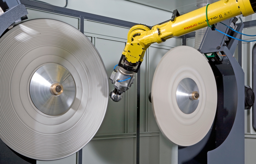 Célula robotizada especial para el pulido de bolas para válvulas.Material: acero inoxidable.
