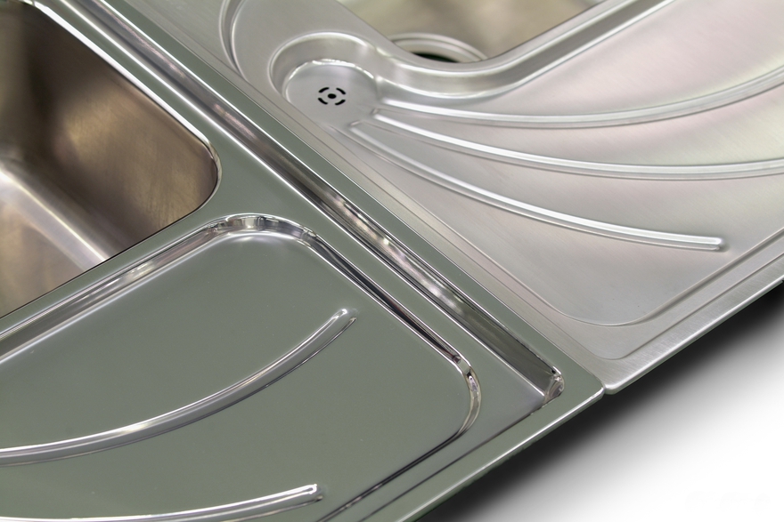 Produits : éviers en acier inoxydable à un ou deux bacs avec égouttoir.